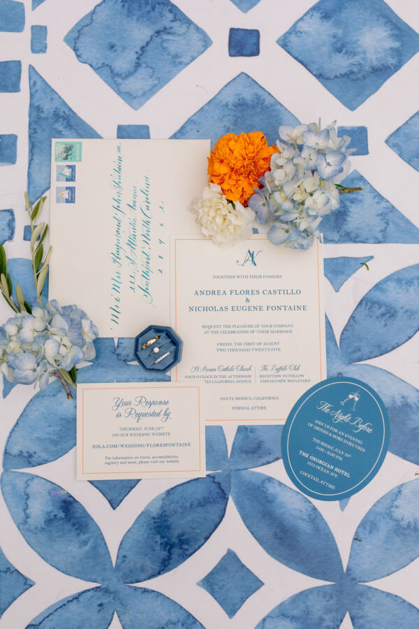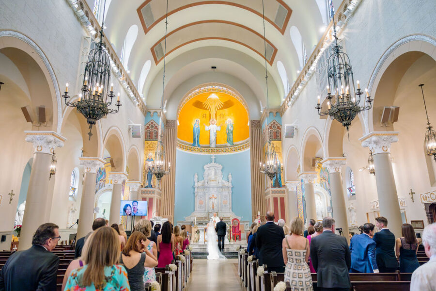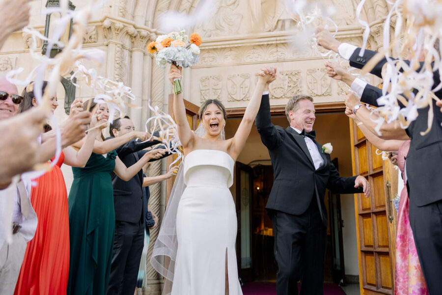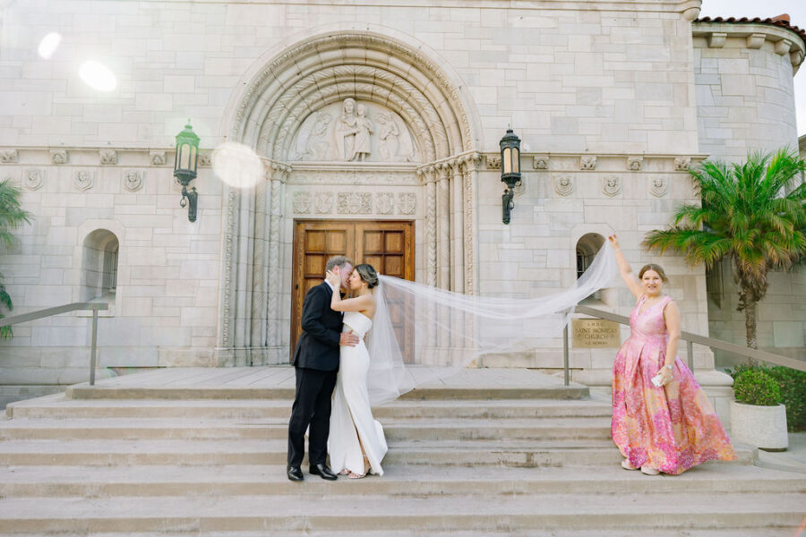 There’s something timeless about a wedding in Santa Monica, and this celebration was no exception. The day began at the iconic St. Monica Catholic Church. Bathed in soft California light, the couple exchanged vows surrounded by family, friends, and the gentle ocean breeze just blocks away.