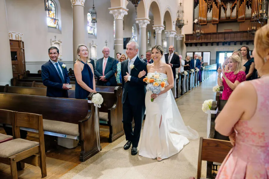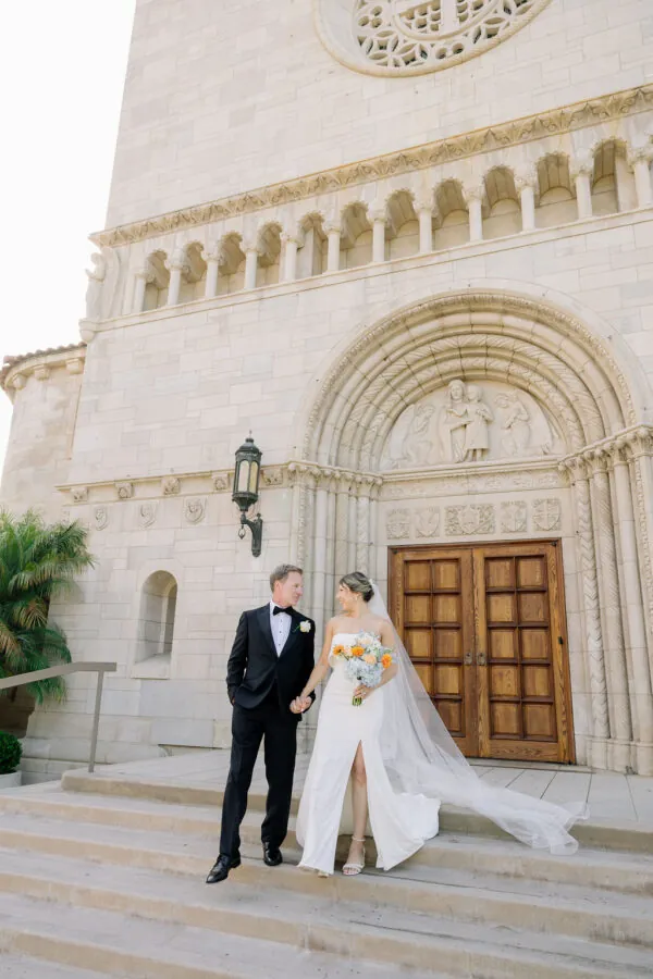 There’s something timeless about a wedding in Santa Monica, and this celebration was no exception. The day began at the iconic St. Monica Catholic Church. Bathed in soft California light, the couple exchanged vows surrounded by family, friends, and the gentle ocean breeze just blocks away.