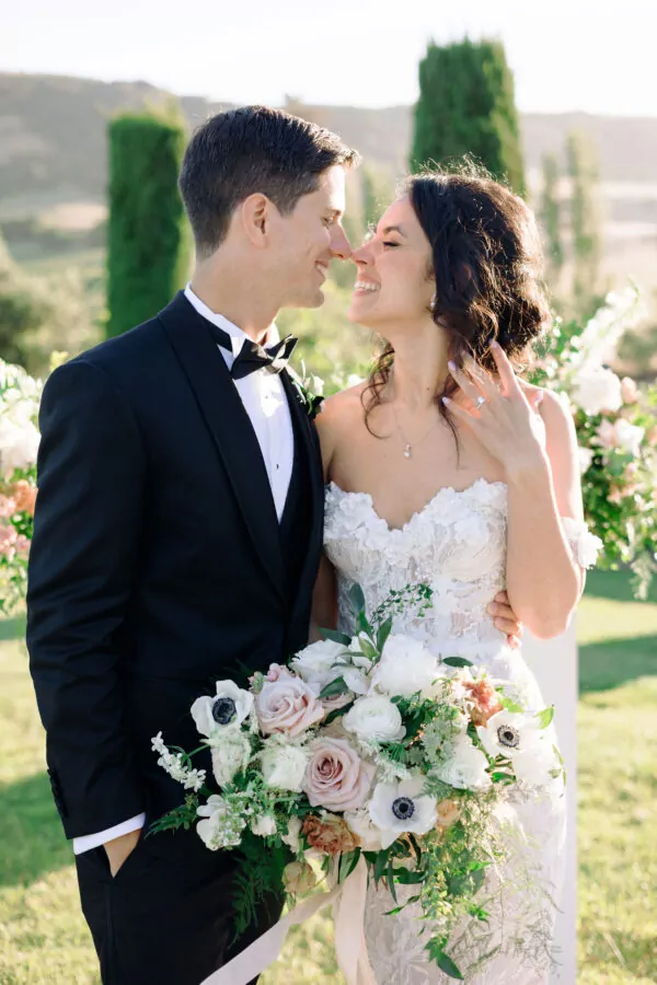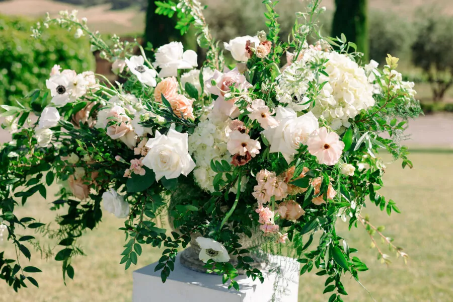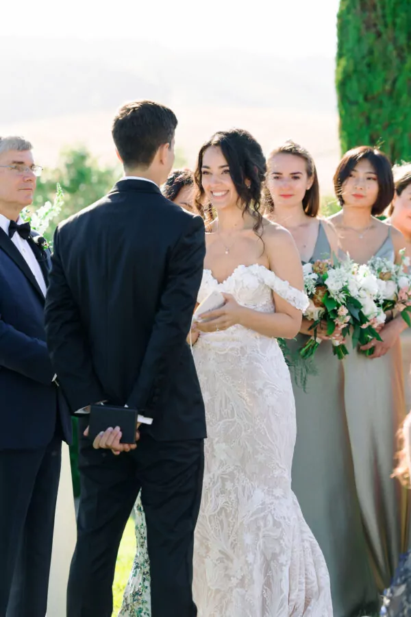 With their Italian countryside theme in mind, Tedy and Daniel carefully selected a color palette that reflected the subtle and organic beauty of the landscape. Their chosen colors included sage green, blush, ivory, gold, and deeper rust as accents. These colors beautifully evoked the romance and warmth of the Italian countryside, setting the perfect tone for their special day.