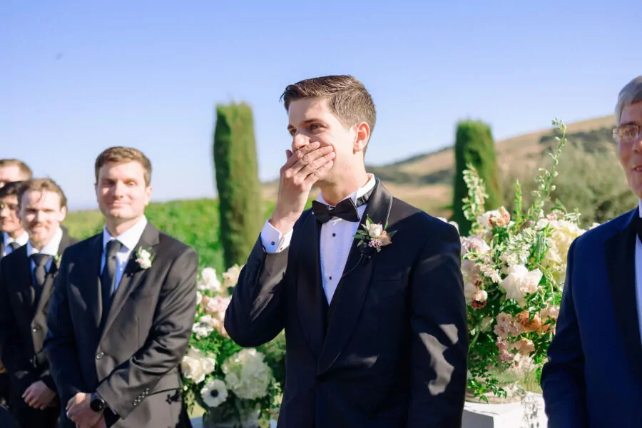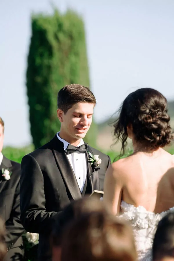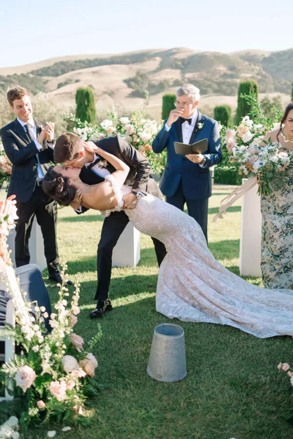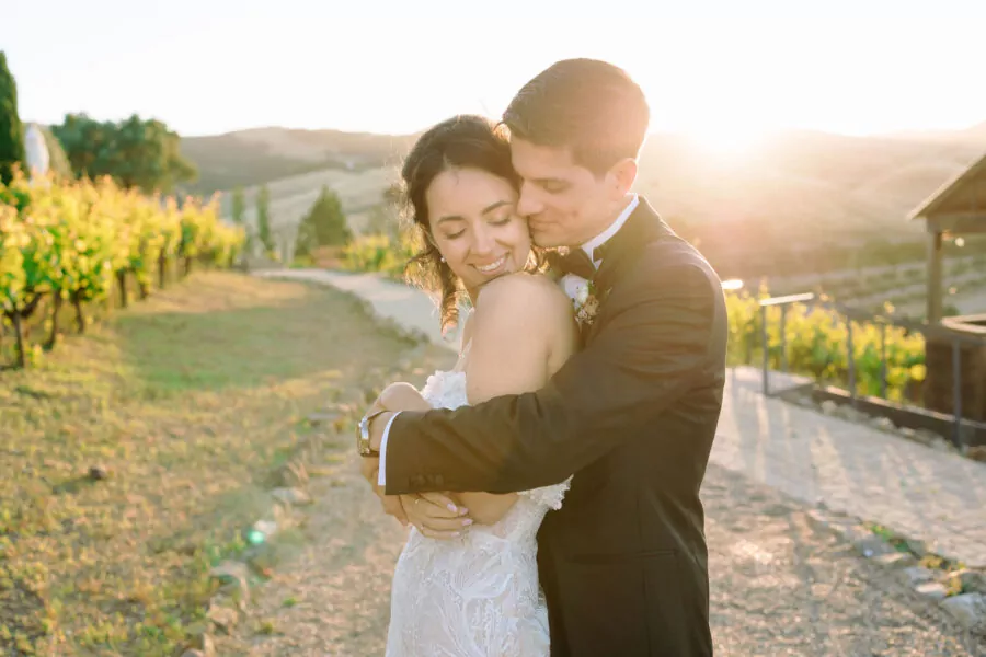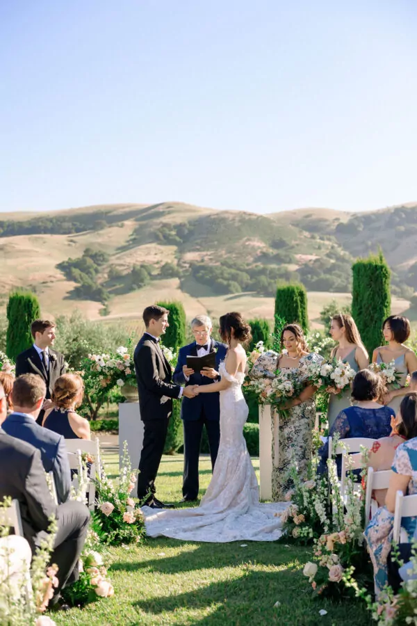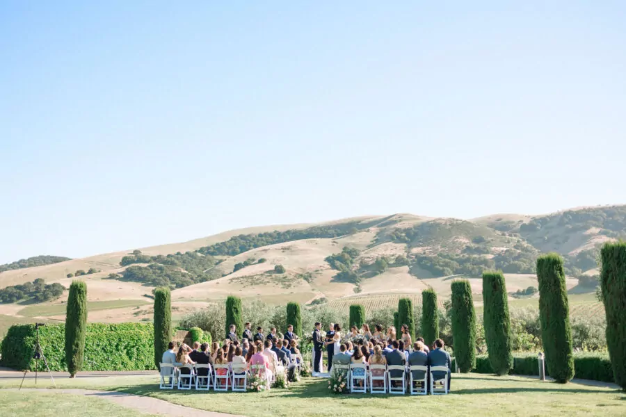 The outdoor ceremony location offered breathtaking views of Sonoma’s vineyards at Viansa, setting the stage for an unforgettable celebration