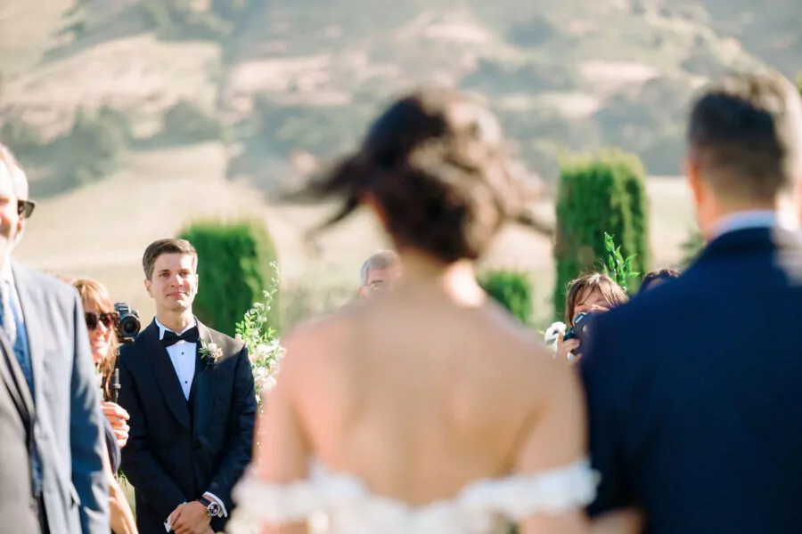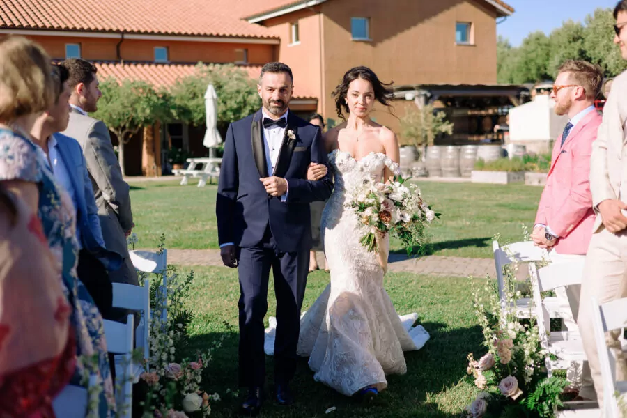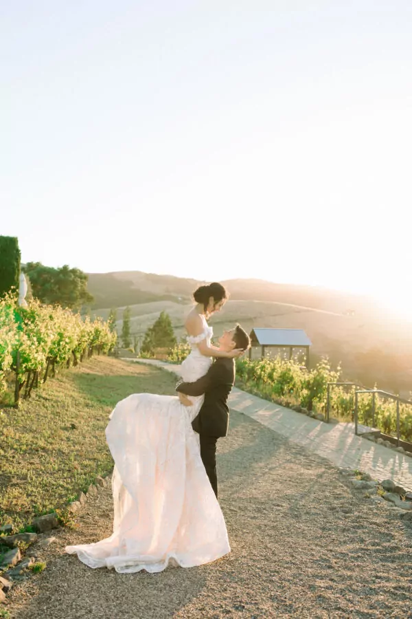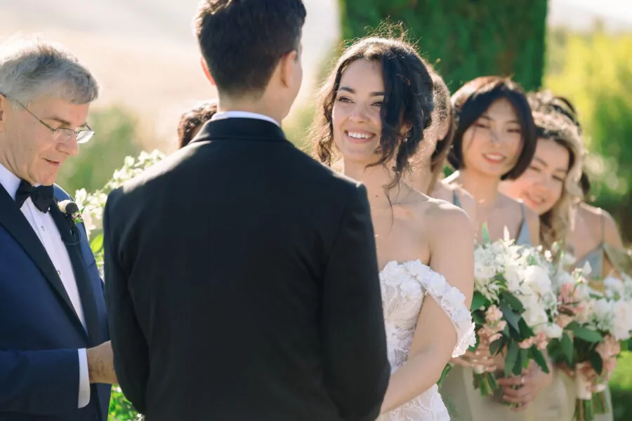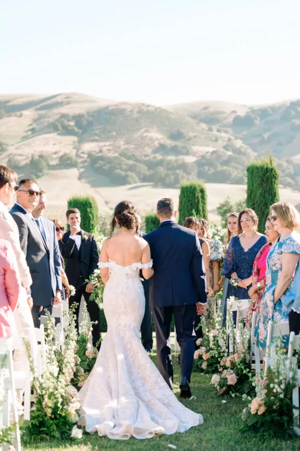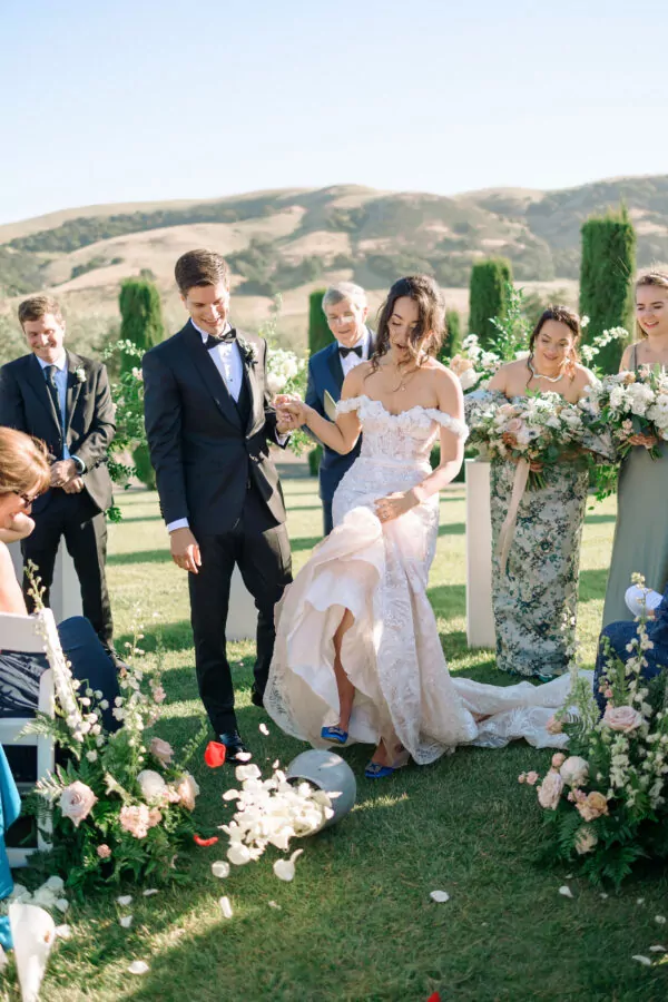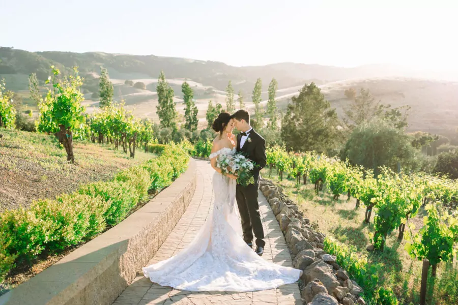 The outdoor ceremony location offered breathtaking views of Sonoma’s vineyards at Viansa, setting the stage for an unforgettable celebration
